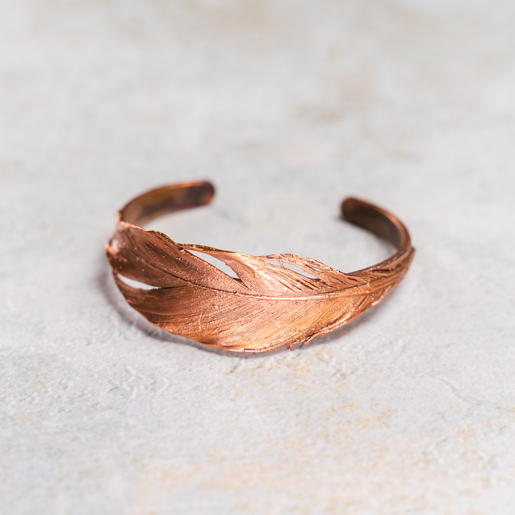 Tags: armband, bracelet, electroformed, koper, pure copper, real feather, small, veer