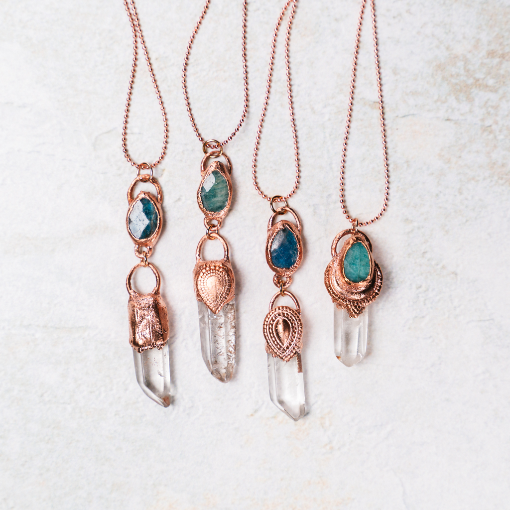 Deze hanger bestaat uit een facet geslepen blauwe apatiet met daaronder een gedecoreerde lodolietpunt. De hanger is in totaal 5,5cm lang. Het kettinkje is een rose goud kleurige ballchain, lood en nikkelvrij en is 50cm lang.