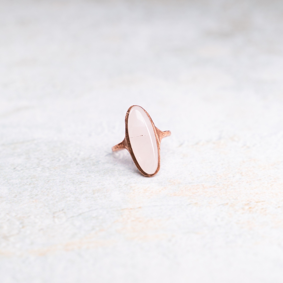 Tags: copper, electroformed, koper, maat 17.5, Pink, ring, rosequartz, rozenkwarts