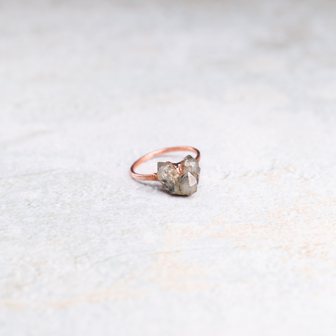 Ring met een cluster van plumosiet in kwarts kristalletjes.