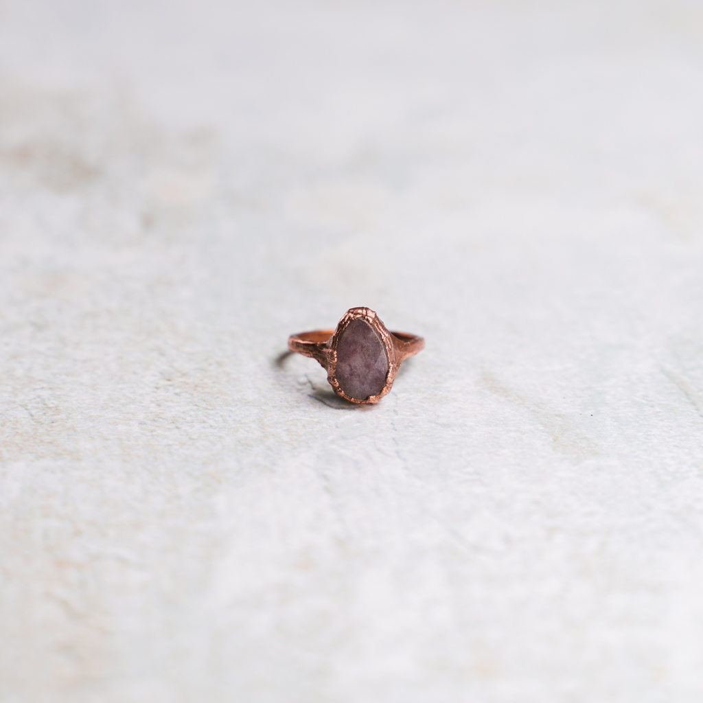 Ring met facet geslepen roze amethist in koper gezet.