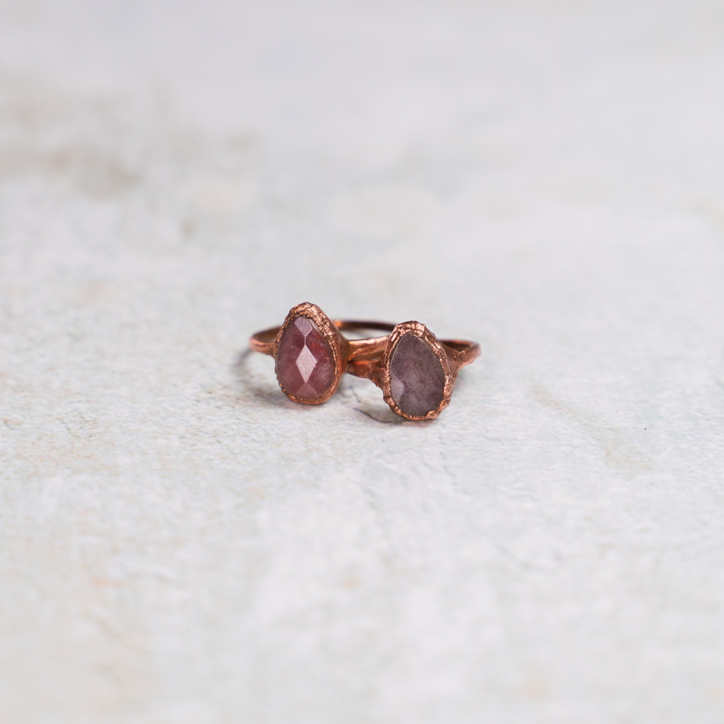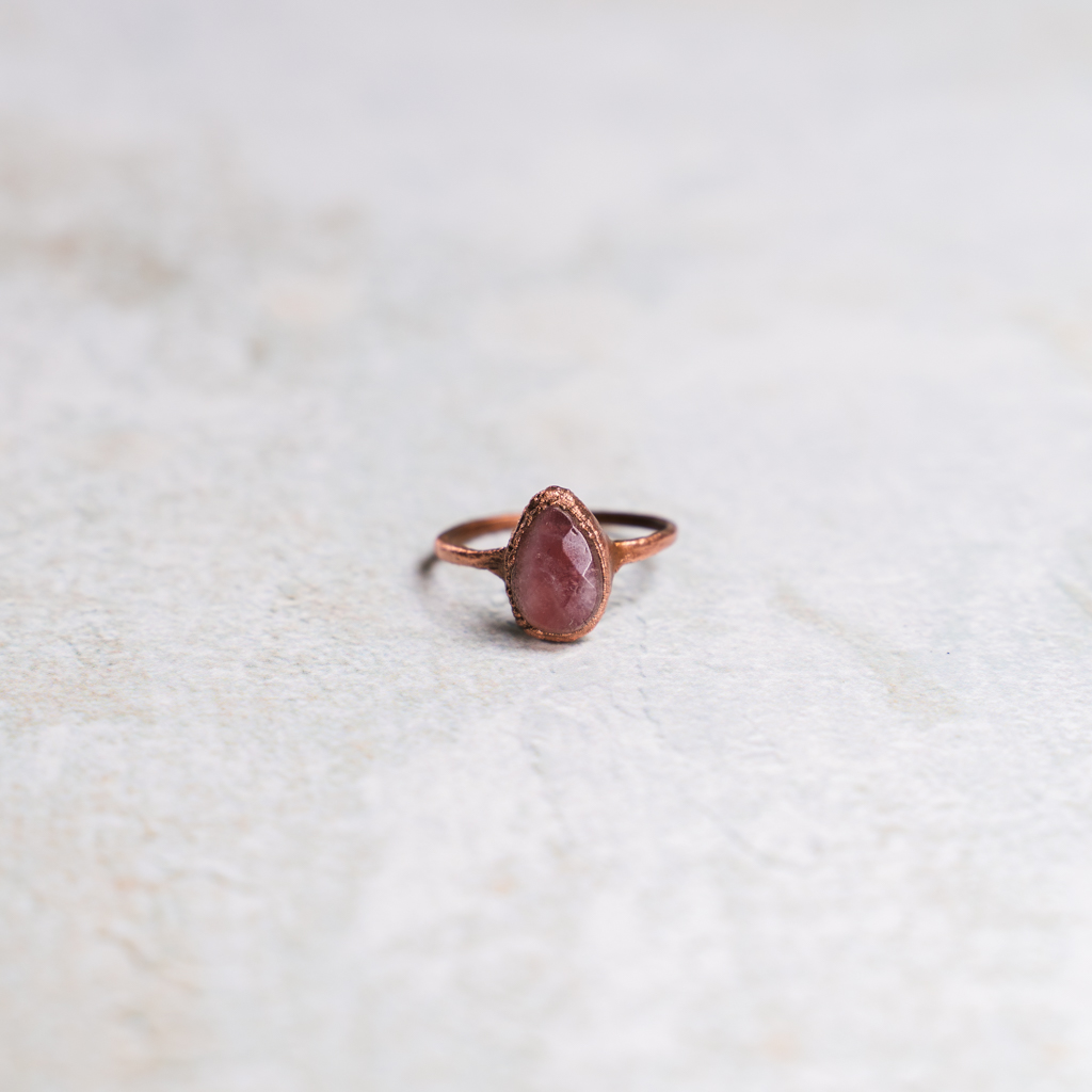 Ring met facet geslepen roze amethist in koper gezet.