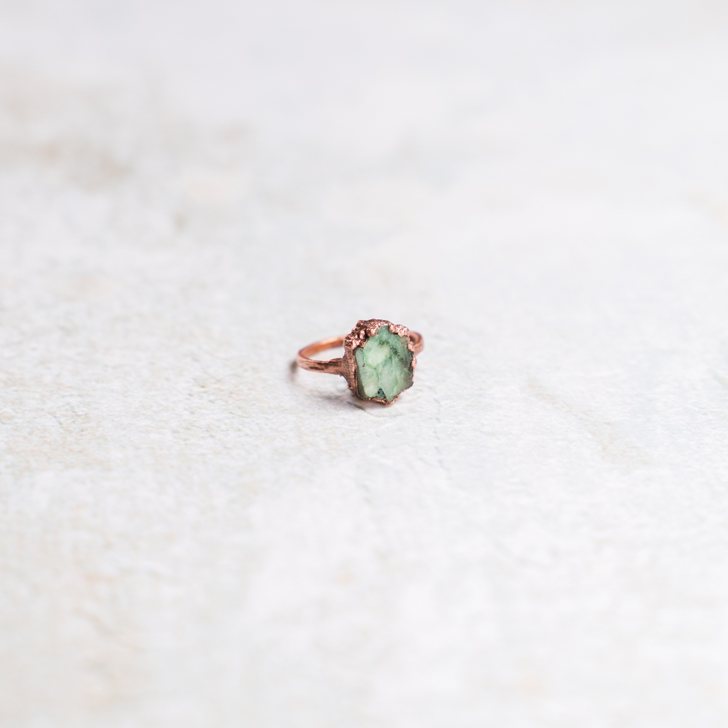 Ring met ruwe smaragd in koper gezet.