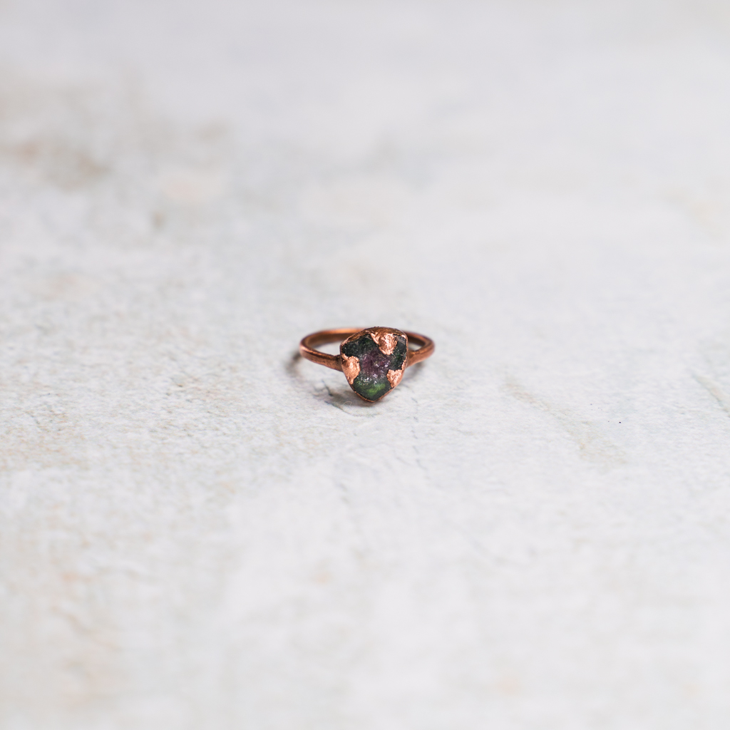 Tags: copper, electroformed, green, green pink, koper, maat 16.5, ring, roze, toermalijn, watermeloen toermalijn, watermelon toermaline